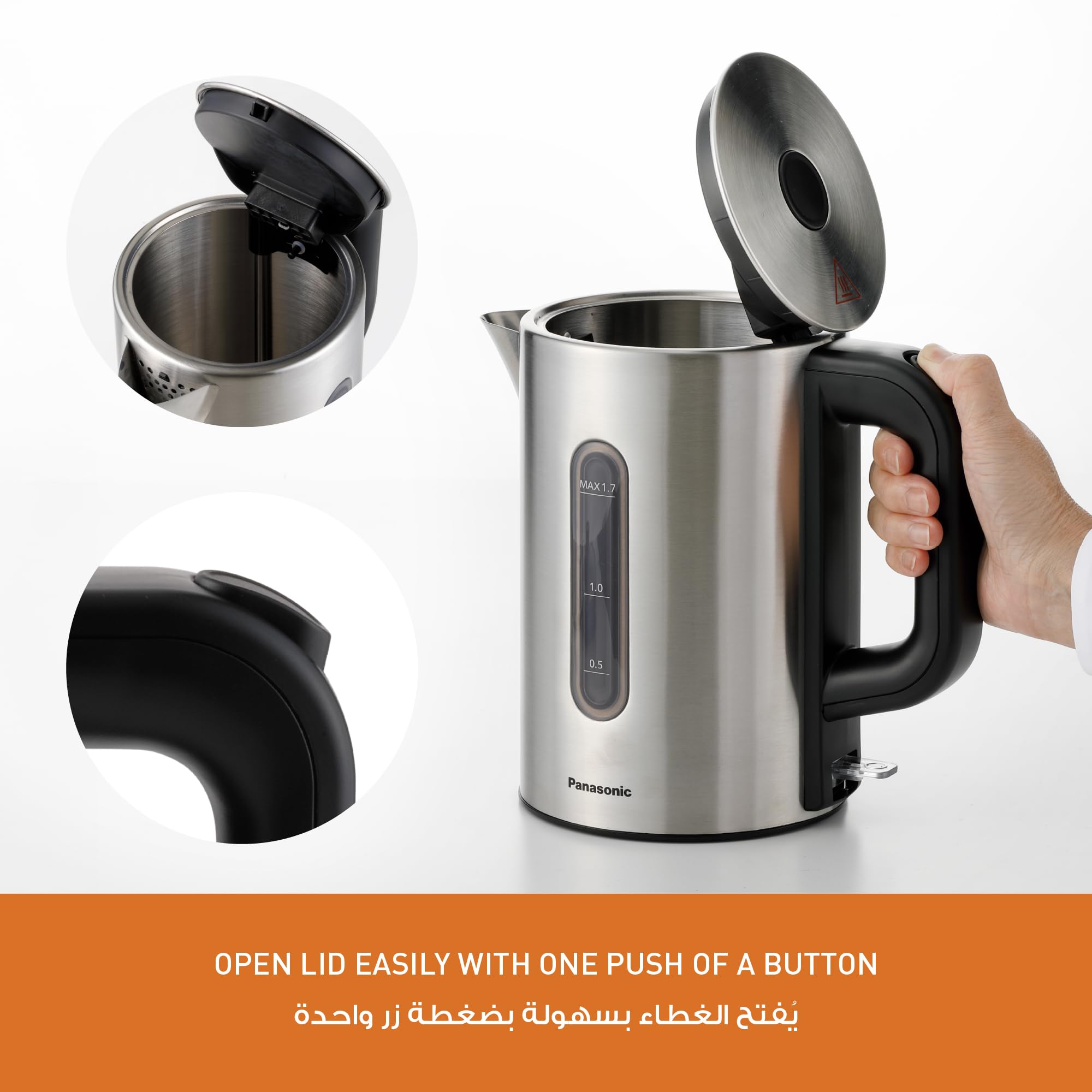 غلاية ماء Panasonic NC-K301STB – سعة 1.6 لتر | 2200 واط | ستانلس ستيل | صناعة الصين