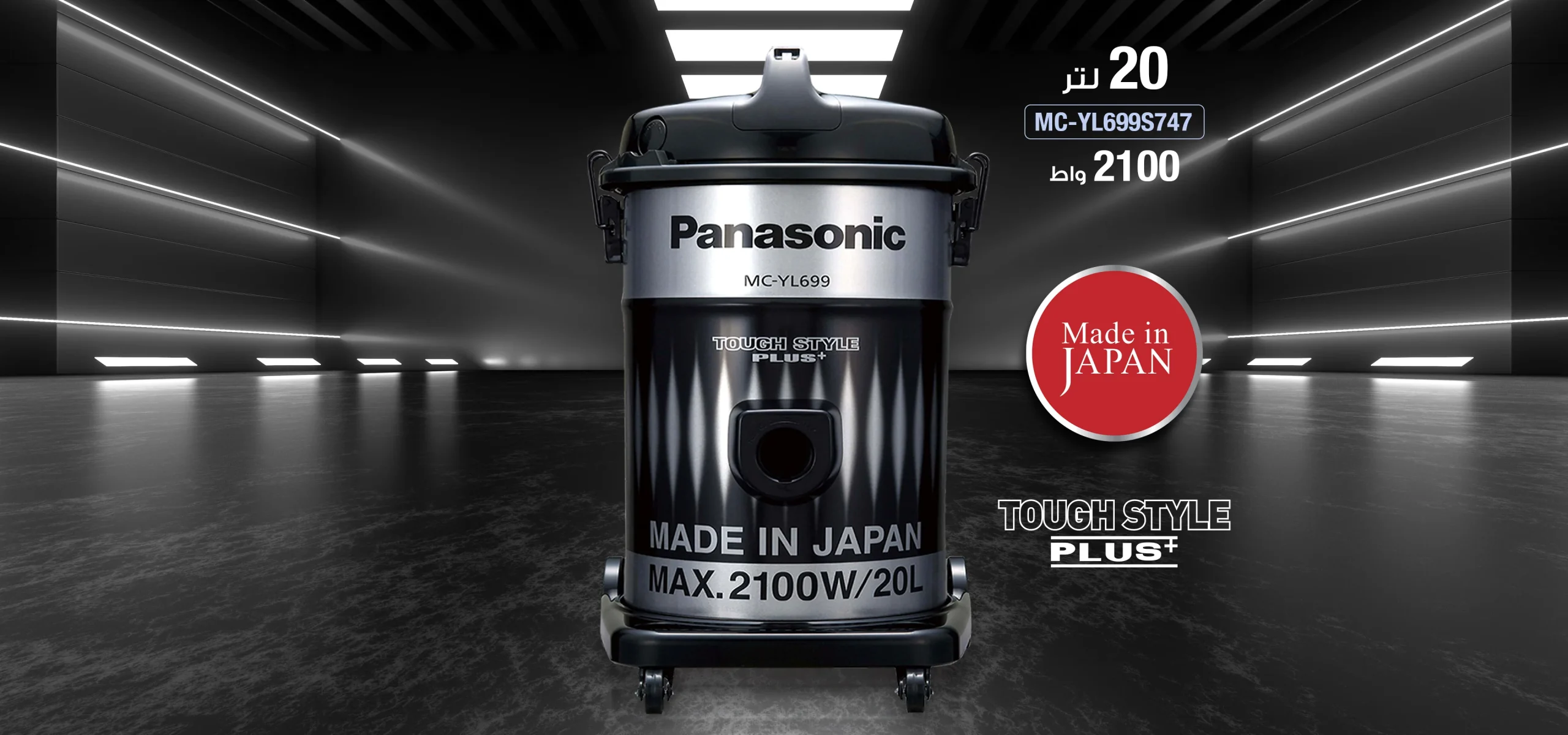 مكنسة Panasonic MC-YL699S149 بقوة 2100 واط وسعة 20 لتر، من فئة Tough Series القوية، مصممة للاستخدام الشاق مع أداء عالي واعتمادية يابانية.