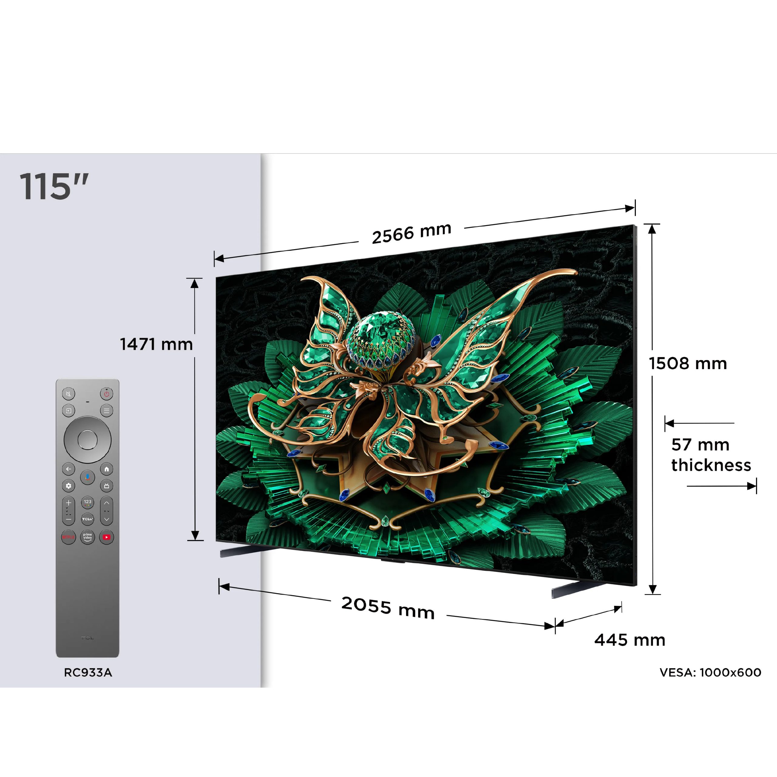 TCL 115C7Kتلفزيون TCL مقاس 115 بوصة Mini LED بمعدل تحديث 144 هرتز لتجربة سينمائية فائقة الحجم.